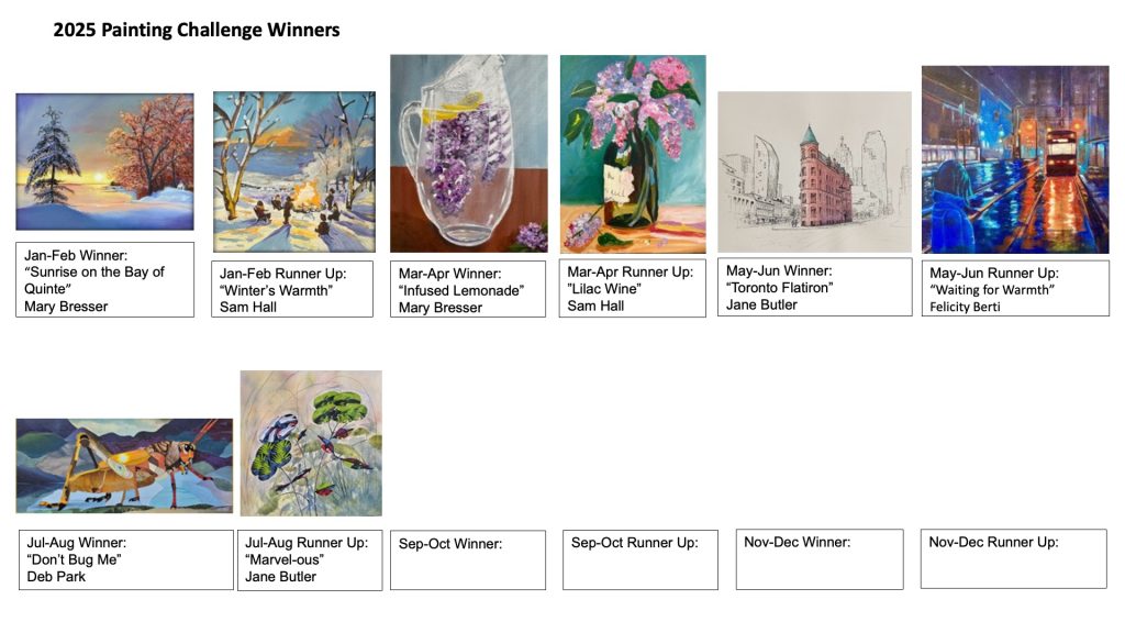 Challenges: Paint challenges continue in 2025. September-October challenge is “your choice”. Winners are voted by members.