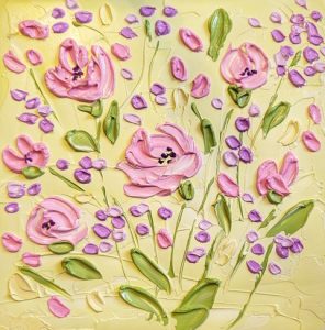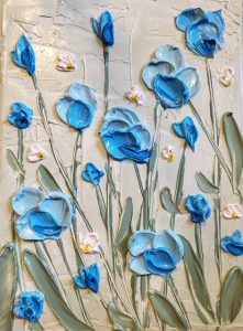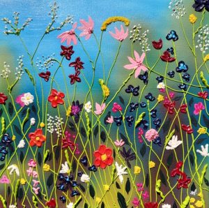 Michelle is an artist with a love for colourful textured impasto techniques that make people want to reach out and touch (please don’t or you might get booted out of the gallery). She uses acrylic, oil pastels, texture mediums, coloured pencils, and charcoal in her artworks. Michelle is a published author under her pseudonym, M. Tasia, with over thirty novels under her belt.
